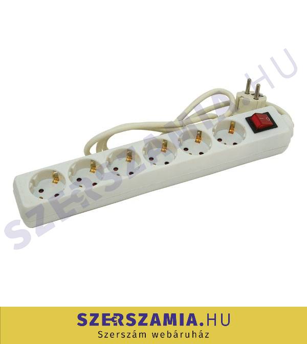 3m-es villamos elosztó, kapcsolóval, 6 aljzat, földelt, 250V/16A, max :3500W