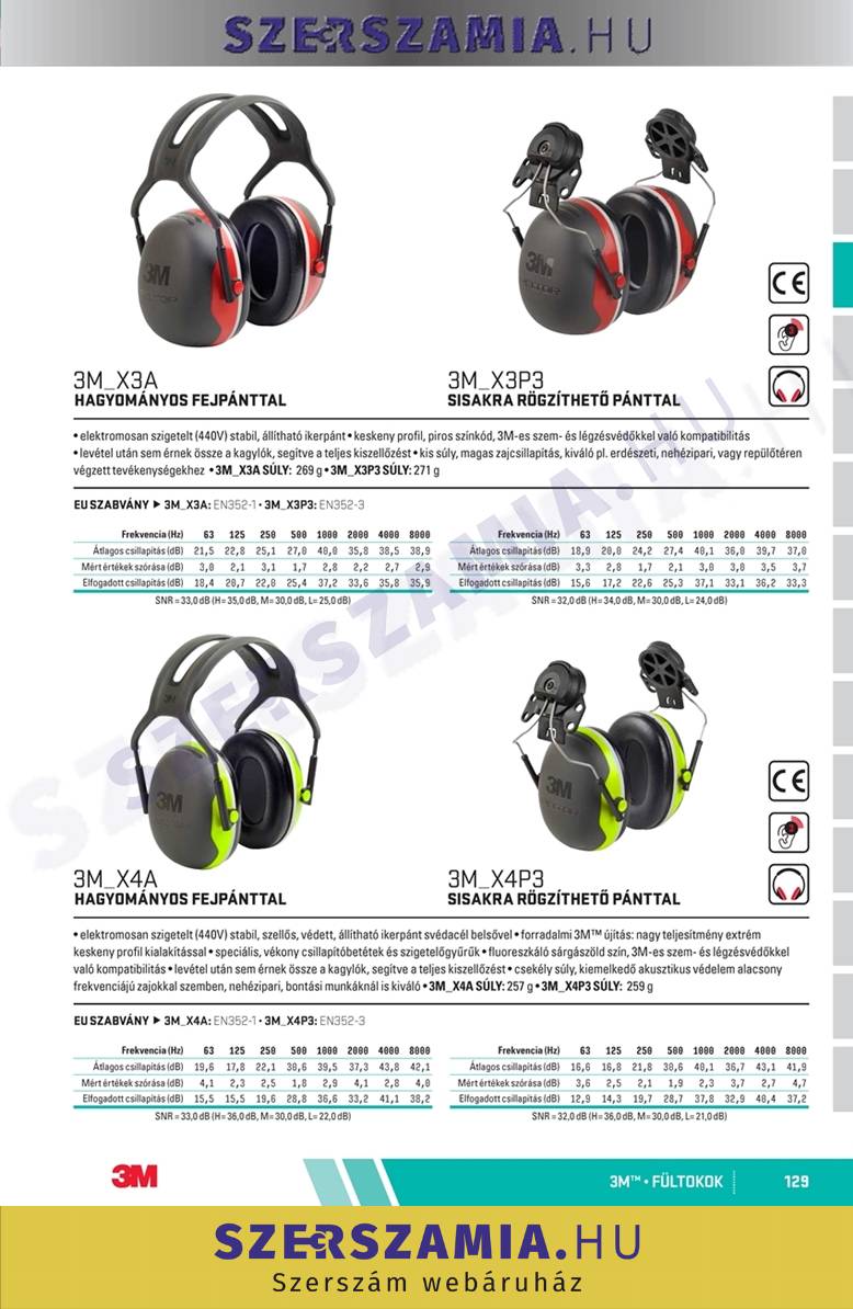 Lektromosan szigetelt (440V) stabil, szellős, védett, állítható ikerpánt svédacél belsővel. Forradalmi 3M™ újítás: nagy teljesítmény extrém keskeny profil kialakítással. Speciális, vékony csillapítóbetétek és szigetelőgyűrűk. Fluoreszkáló sárgászöld szín, 3M-es szem- és légzésvédőkkel való kompatibilitás. Levétel után sem érnek össze a kagylók, segítve a teljes kiszellőzést, sisakra rögzíthető pánttal. Súly: 259 g EU SZABVÁNY: EN352-3