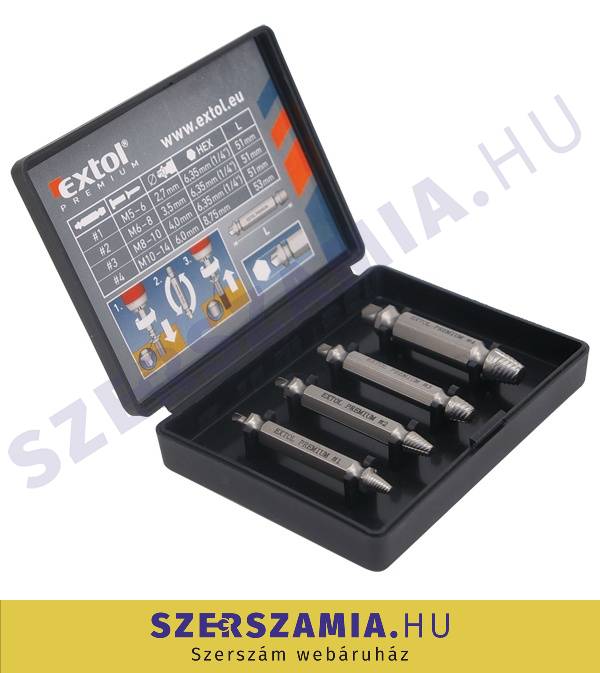 4 db-os törtcsavar kiszedő készlet HSS EXTOL PREMIUM