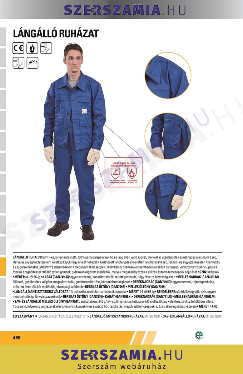 | Termék csoport: | Láng, Hő, Ív és Saválló védőruha |