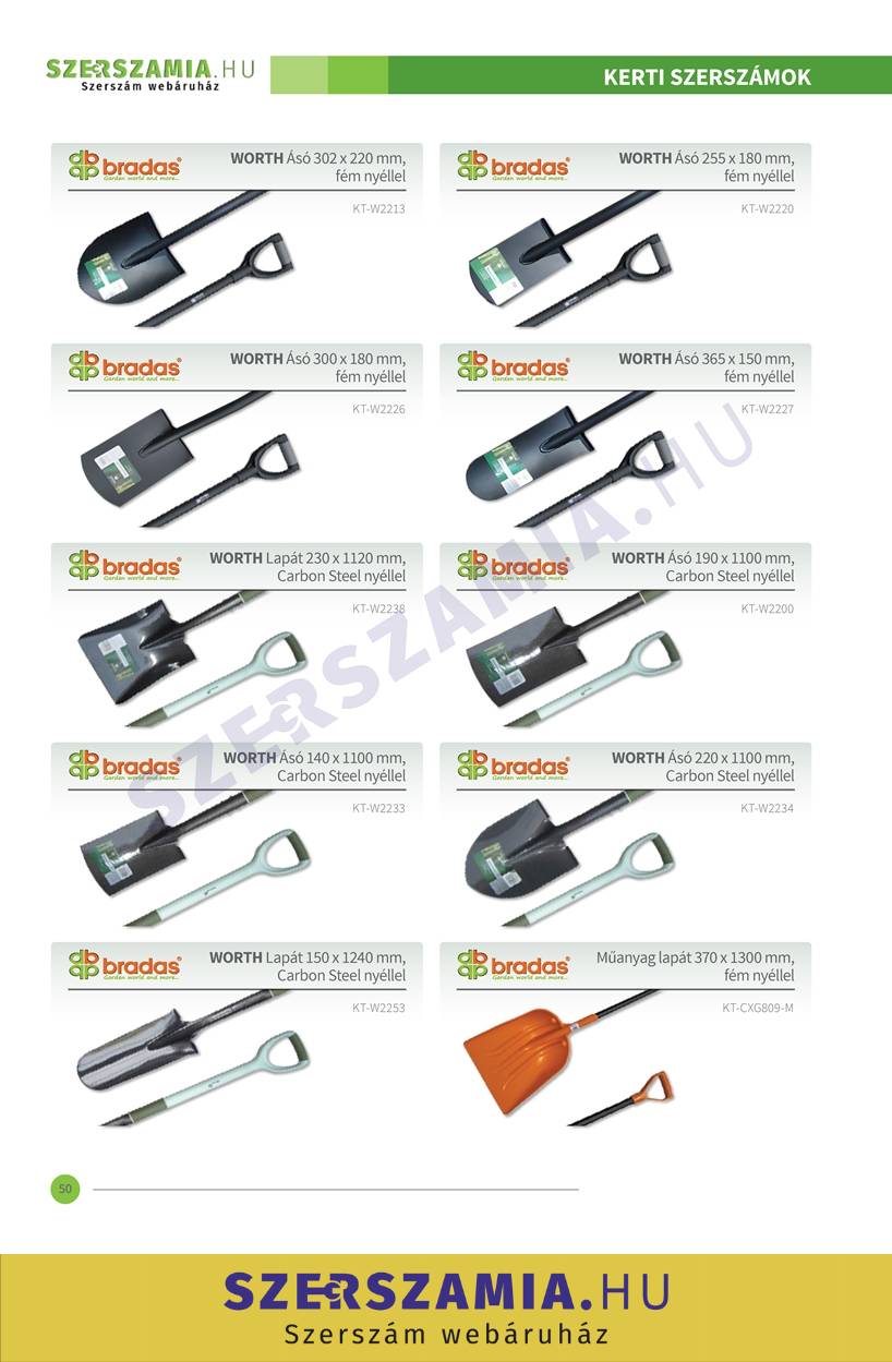 Ásó WORTH 300x180 mm, fém nyéllel DY