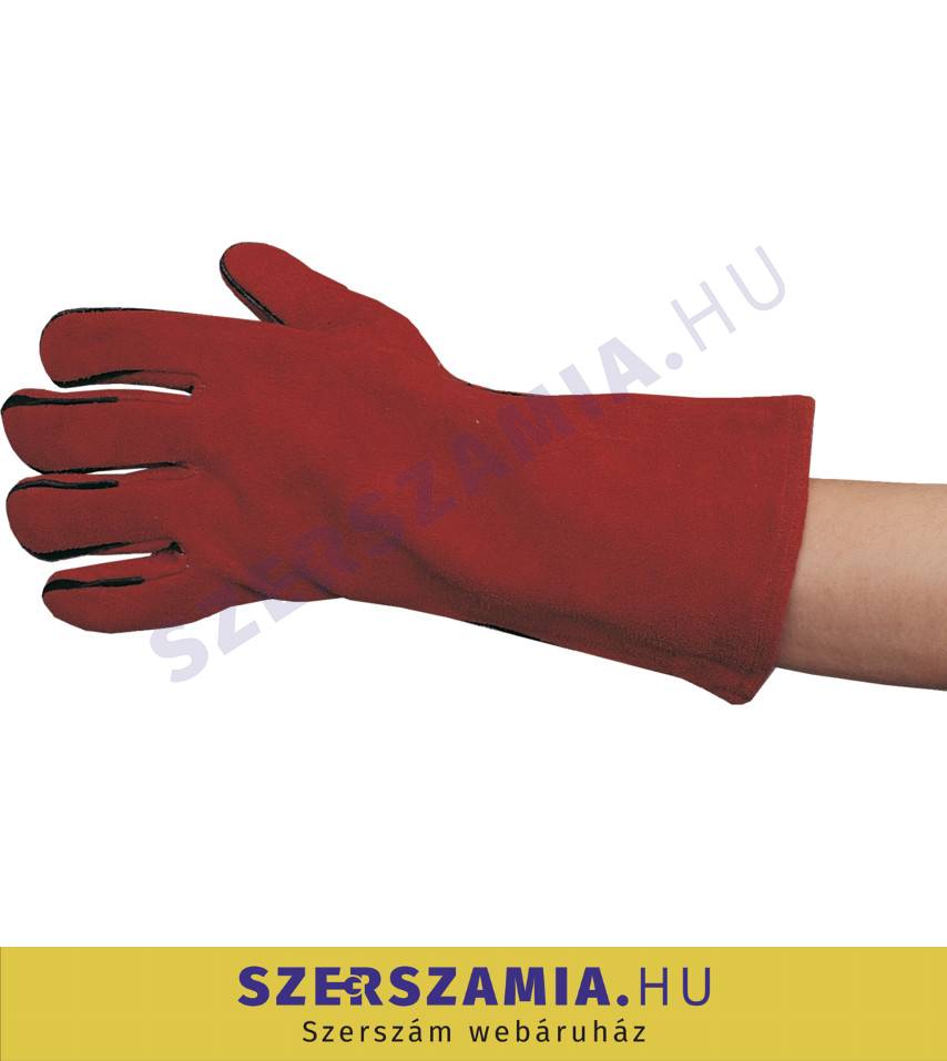 Bélelt hosszúszárú bőr védőkesztyű, piros 11-es