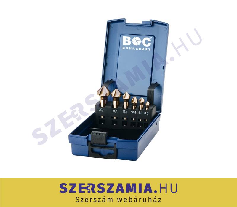 BOHRCRAFT kúpsüllyesztő készlet 90° három vágóélű HSS-E Co5 6r. 6,3-20,5 KS6-K Co ABS-Box