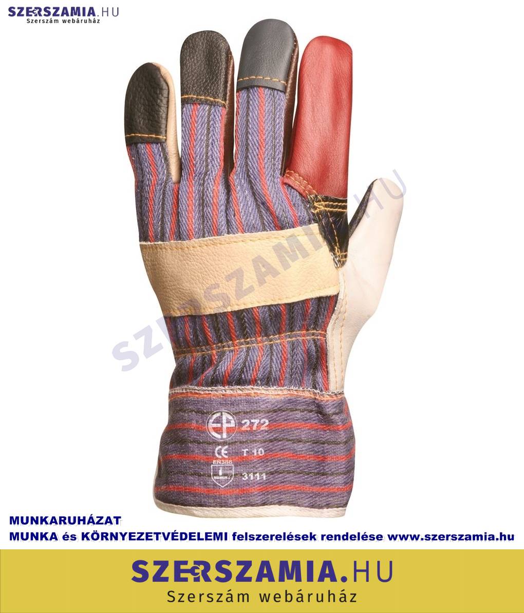 Többszínű fedett színmarha bútorbőr. 270-es Ecoline® változata. Vászon kézhát és mandzsetta. Artéria-, köröm- és ökölcsontvédő. Pamut tenyérbélés. MÉRET: 10-es EU SZABVÁNY: EN420, EN388: 3111