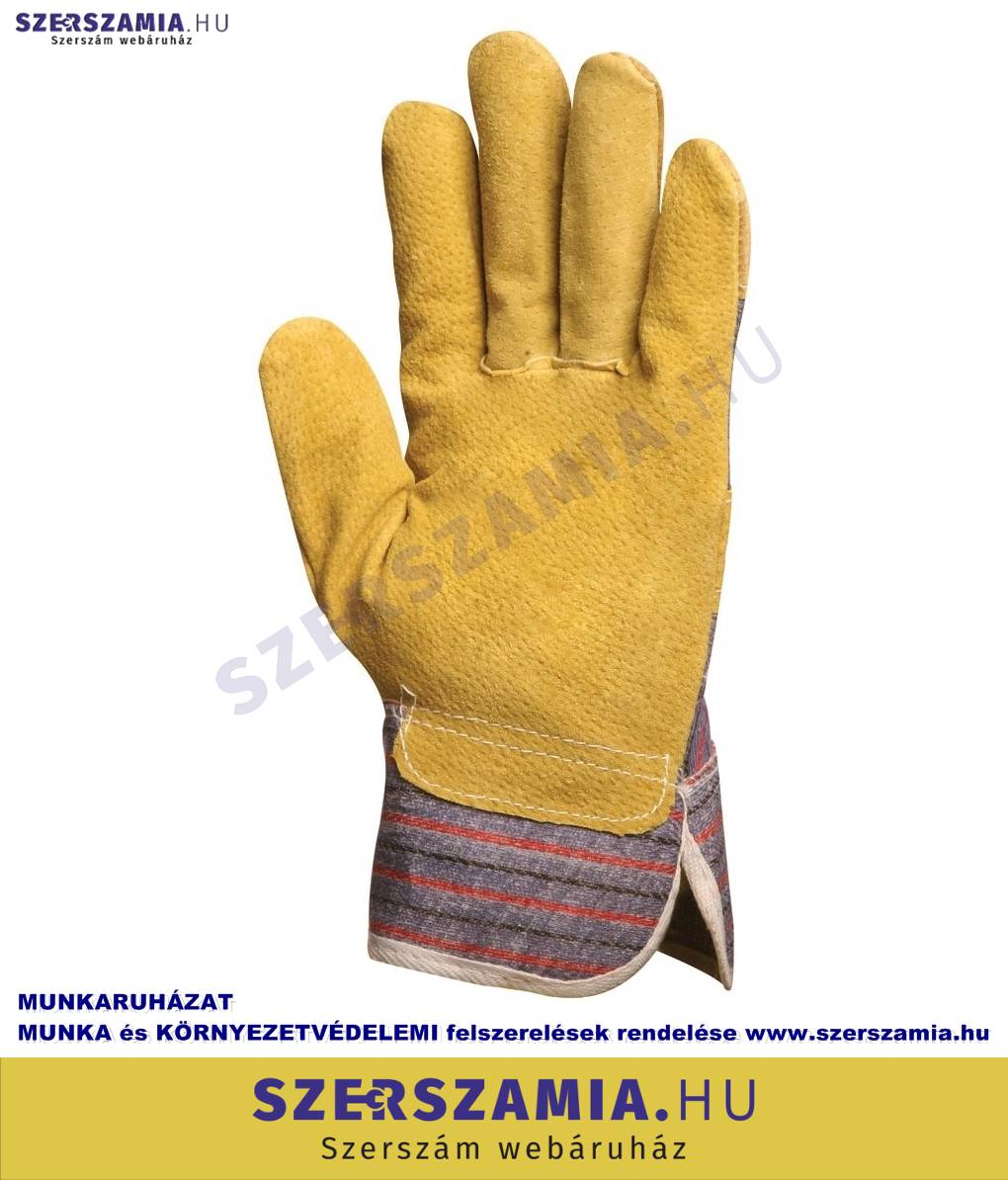 Bőrkesztyű, sárga sertéshasíték/csíkos vászon,tenyérbélés, méret: 10, 12pár / csomag