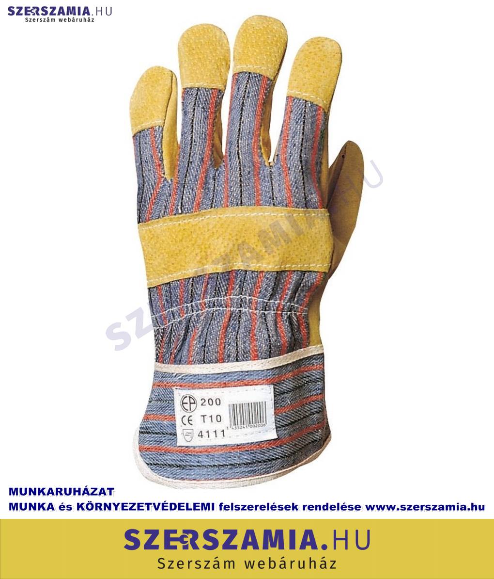 Sárga sertéshasíték tenyér. Artéria-, köröm- es ökölcsontvédő. Vászon kézhát és mandzsetta. Pamut tenyérbélés. MÉRET: 10-es EU SZABVÁNY: EN420, EN388: 4111