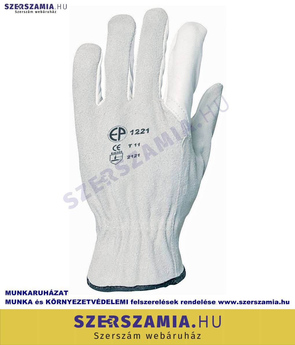 Bőrkesztyű, szürke színmarha tenyér/hasíték kézhát, méret: 8, 10pár / csomag