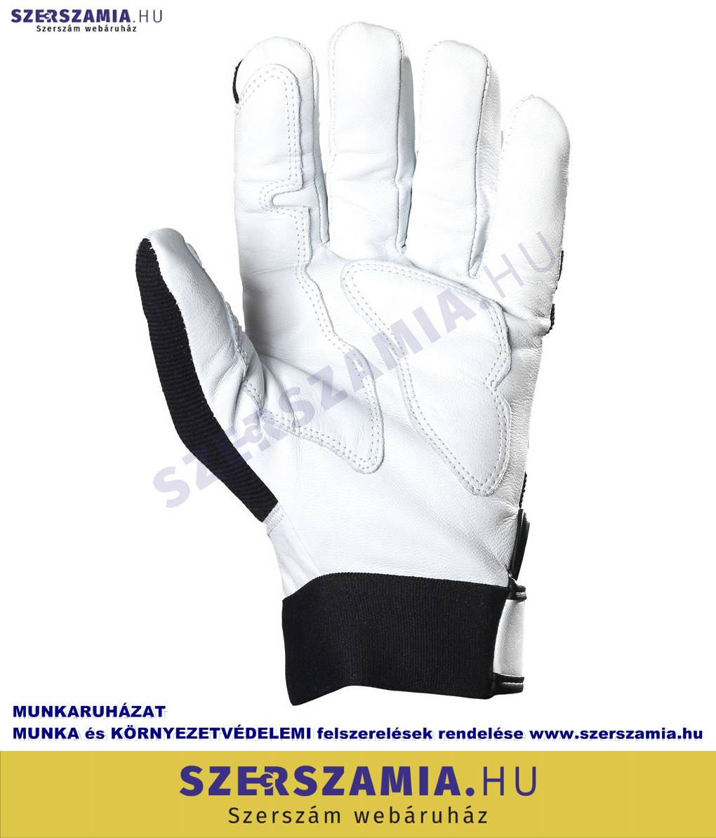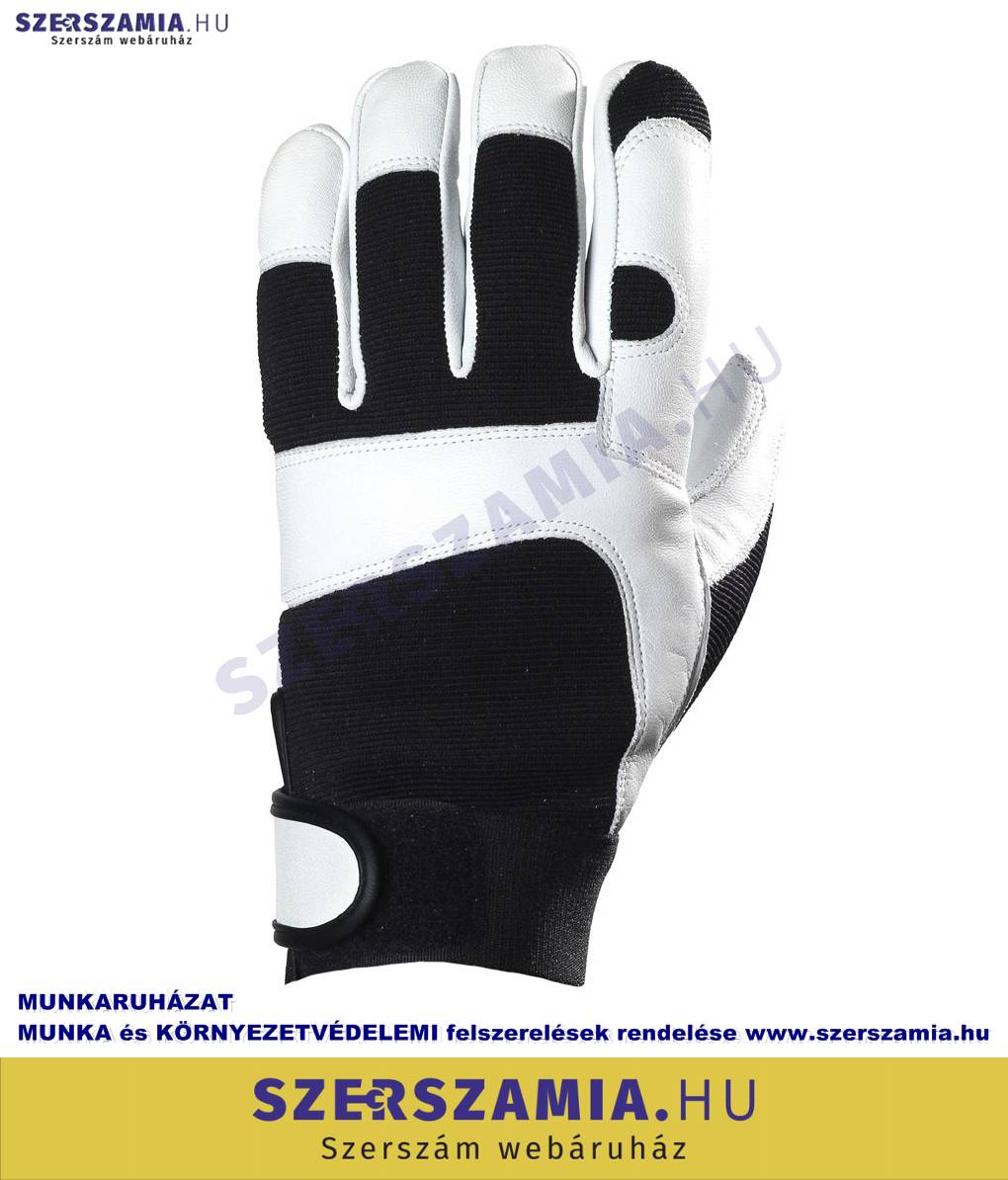 Finom kecskebőr tenyér, hüvelyk- és mutató ujjakon megerősítve. Rugalmas fekete poliészter kézhát, kecskebőr ökölcsont és körömvédővel. Elasztikus mandzsetta, állítható tépőzáras szegéllyel. MÉRET: 10-es EU SZABVÁNY: EN420, EN388: 2122