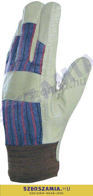 Bőrkesztyű, téli, színes színmarha/fehér vászon kézhát, méret: 10, 6pár / csomag