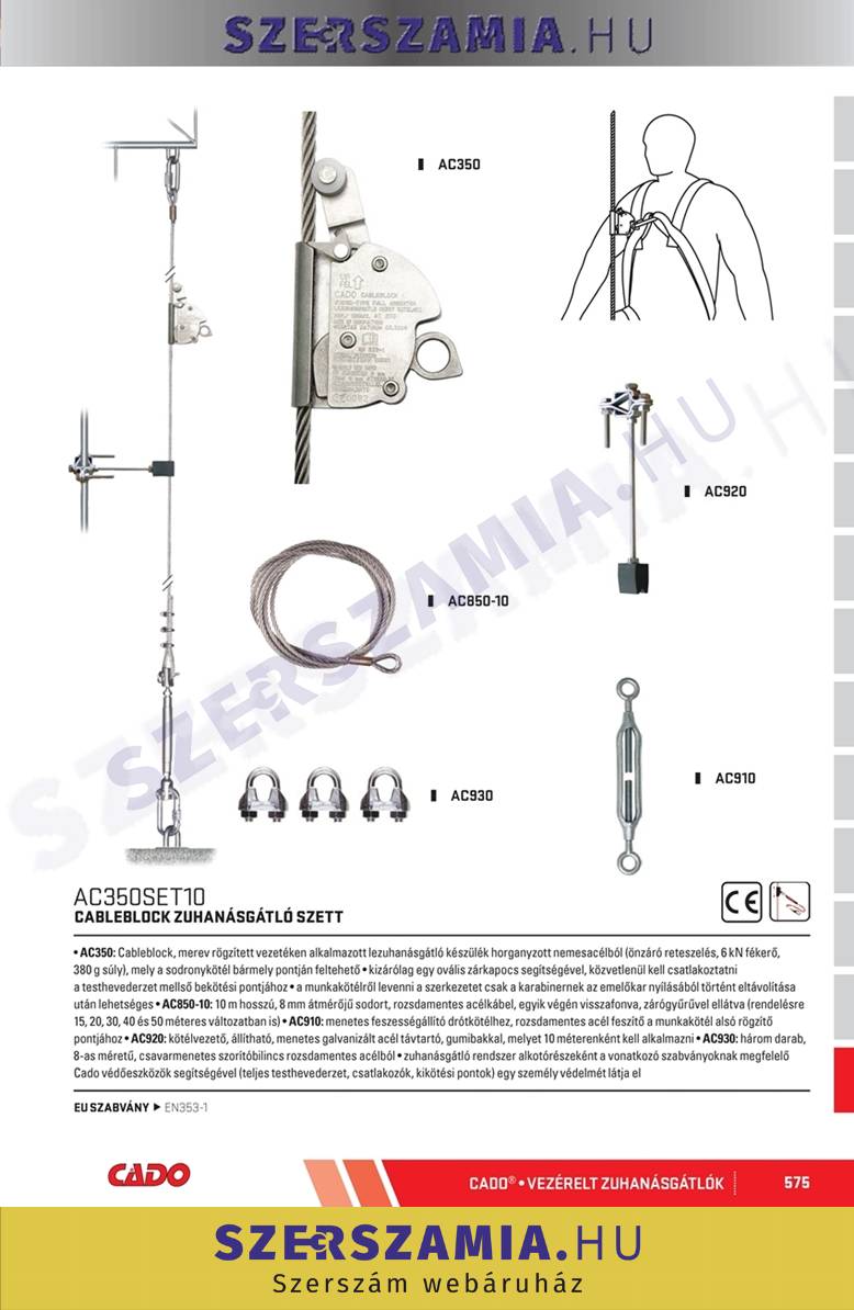 CADO Linostop zuhanásgátló szett, 5 kg-os terhelésnél önzáró, kötél 12mm, méret: 10 m