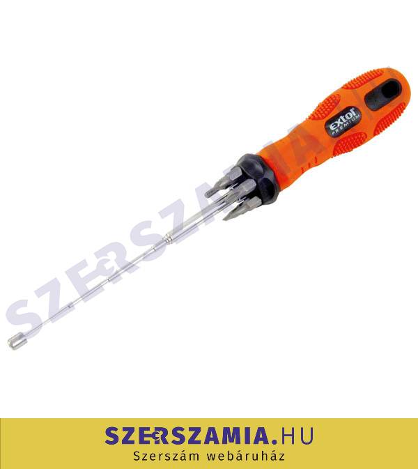 Csavarhúzó markolat 6 fejjel, C.V., teleszkópos mágneses csavarfelszedővel EXTOL PREMIUM