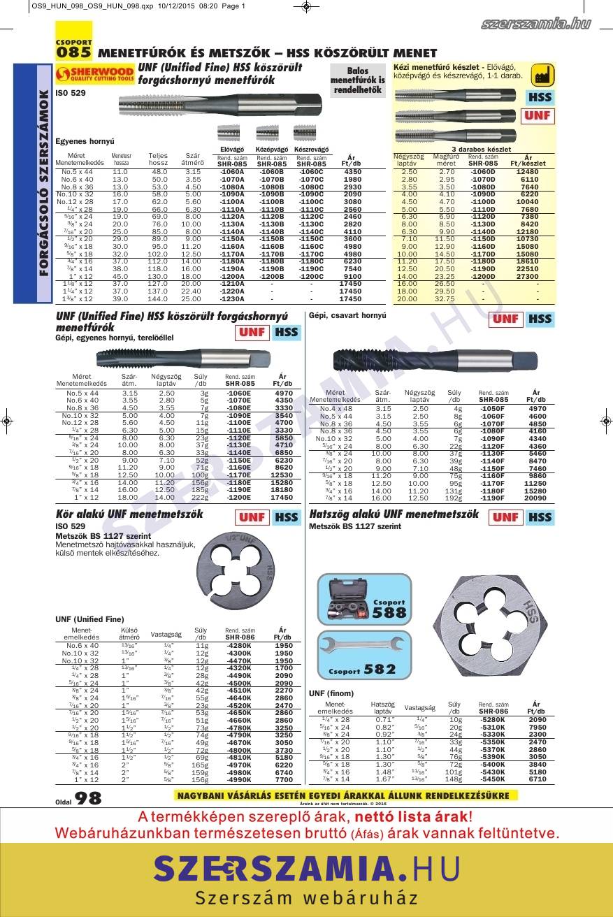 5 x 44 unf egyenes hornyú gépi menetfúró (SHR0851060E) 4.