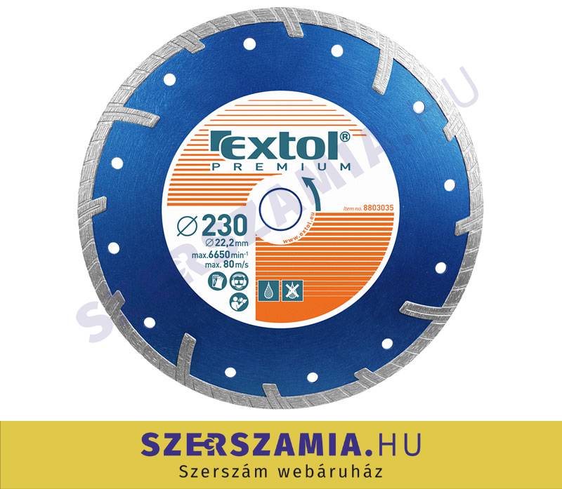 EXTOL PREMIUM, TURBO plus gyémántvágó 230mm, száraz és vizes vágáshoz, vágási mélység: 4,0 cm