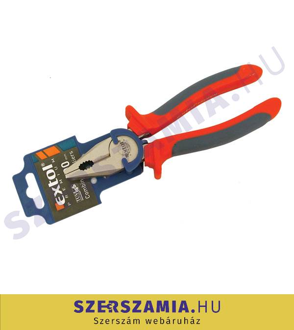 EXTOL PREMIUM Kombinált fogók, TÜV/GS, TPR nyél, akasztós szerszámtartó 200mm