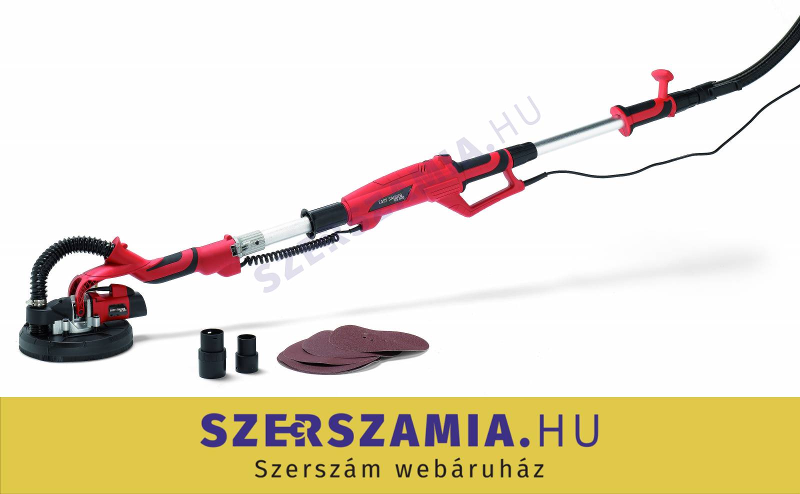 Fal- és mennyezetcsiszológép, 600 Watt teljesítménnyel és 0-1000/min fordulatszámmal. Kihúzható, tetszőlegesen állítható hosszabbítóval 1,2 méter és 2,2 méter hosszúság között. A hosszabbító helyes használatához feltétlenül tanulmányozza a használati útmutatóban leírtakat! Az elszívó része a legtöbb hagyományos porszívóhoz csatlakoztatható