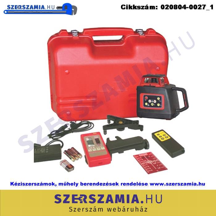 Tartozékok: távirányító, céllemez, akkumulátorcsomag és töltő, hordozótáska, lézerdetektor szorítóbilinccsel, fali konzol, lézer szemüveg, elemek a távirányítóhoz és a detektorhoz, használati útmutató