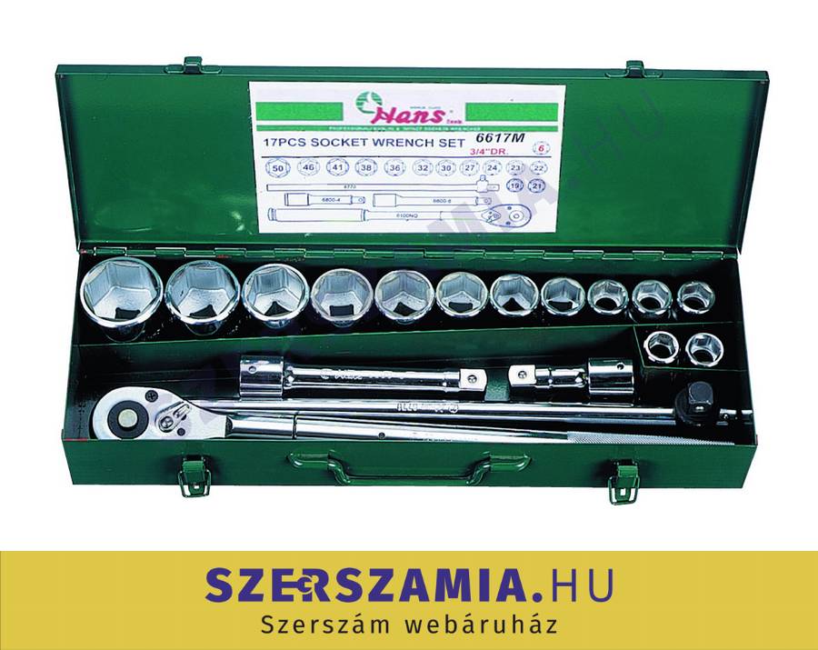 HANS 3/4˝ dugókulcs készlet 17r. 19-50mm 6617M (ZO-040104-0023) KÉZISZERSZÁMOK / DUGÓKULCSOK és KÉSZLETEK / DUGÓKULCS és SZERSZÁMKÉSZLETEK
