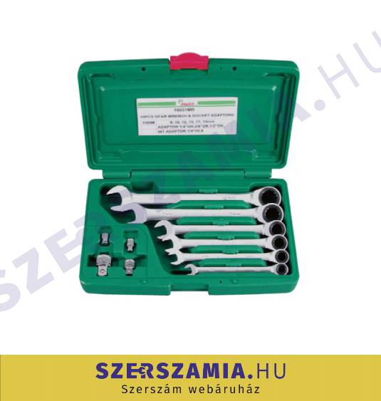 HANS racsnis csillag-villás kulcskészlet 6+4r. 8-19mm + adapterek 16651MB (ZO-040201-0239) KÉZISZERSZÁMOK / KULCSOK, KULCSKÉSZLETEK / RACSNIS KULCSOK, KÉSZLETEK