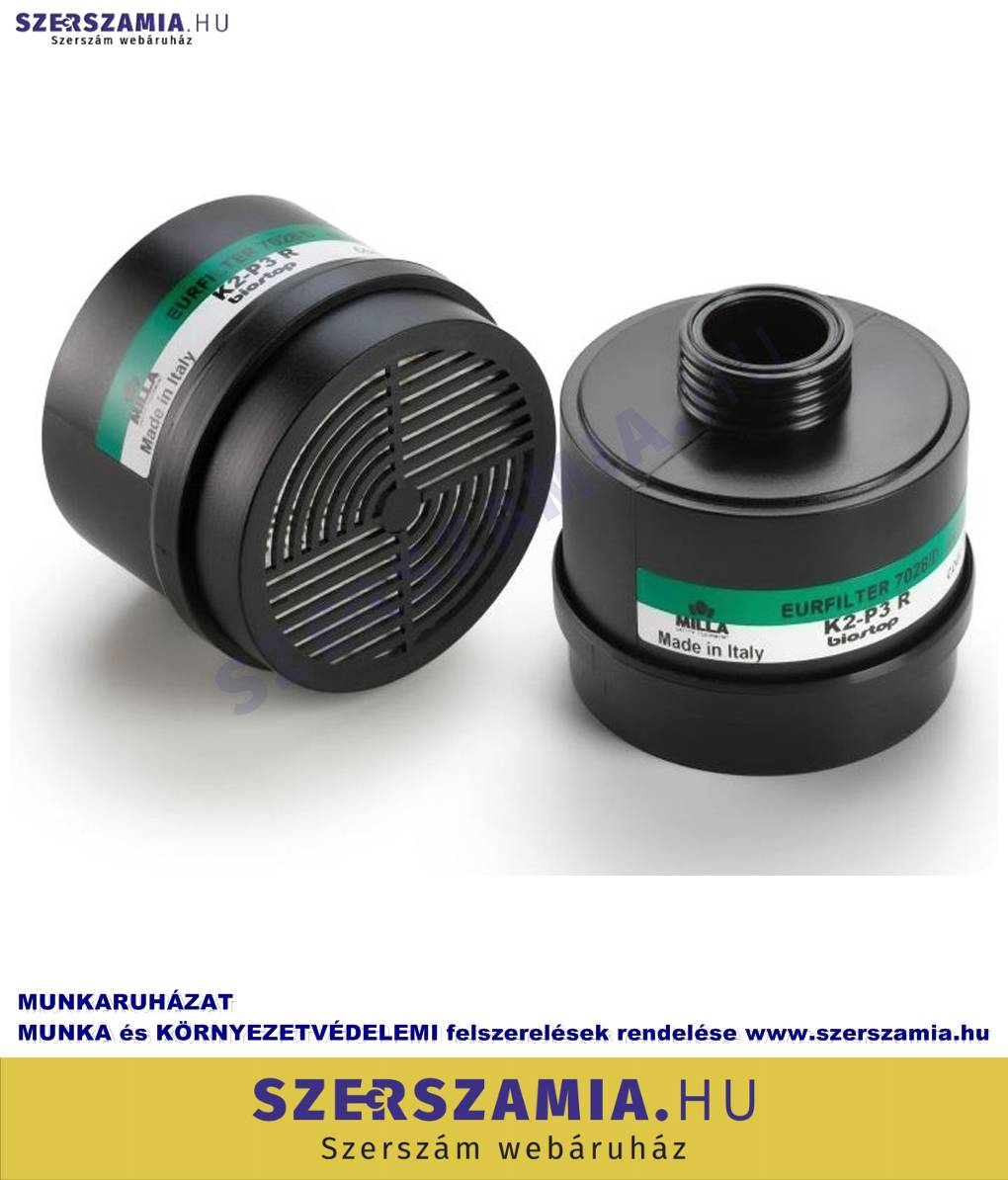 Ammónia és szerves amin-származékok ellen, erős méreg kategóriájú, szilárd és folyékony részecskék ellen EU SZABVÁNY: EN143:2000 +A1:2006, EN14387:2004 +A1:2008