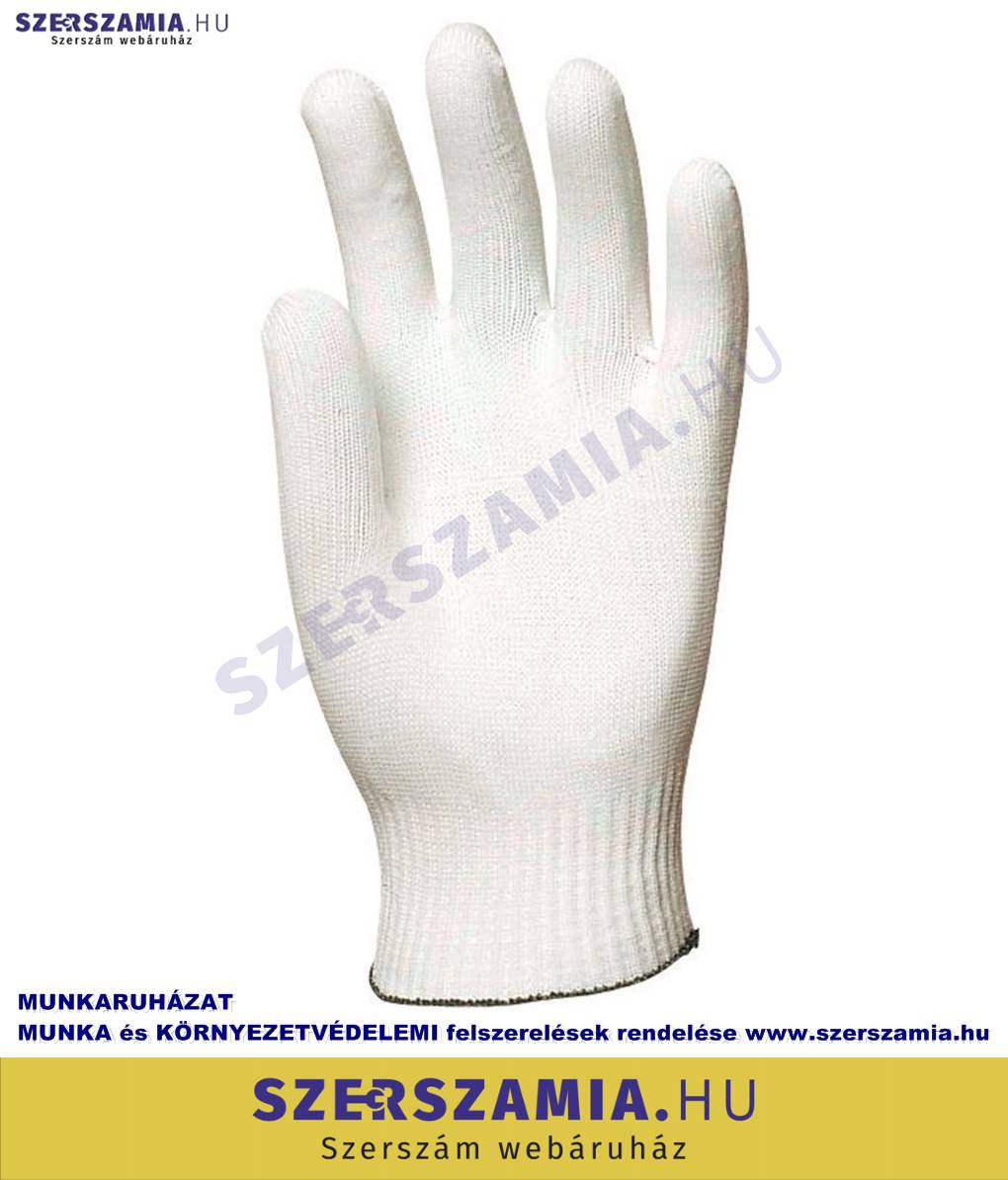 Kötött, vékony fehér poliamid kesztyű, 3 szálas, rugalmas, méret: 8, 10pár / csomag