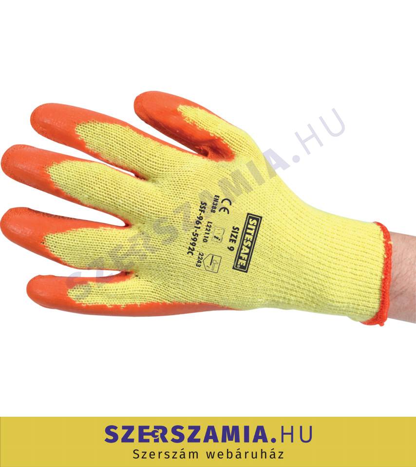 Nejlobélés latex tenyérborítással. Ideális durva tárgyak kezelésére száraz vagy nedves körülmények között. Megfelel az EN388-as és az EN420-as szabványoknak (kézügyesség).
