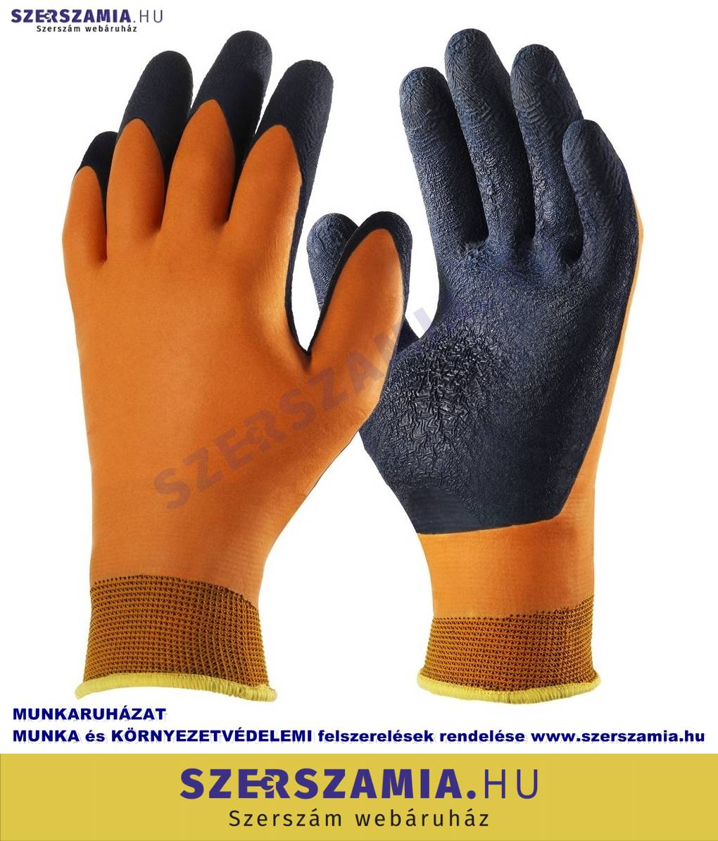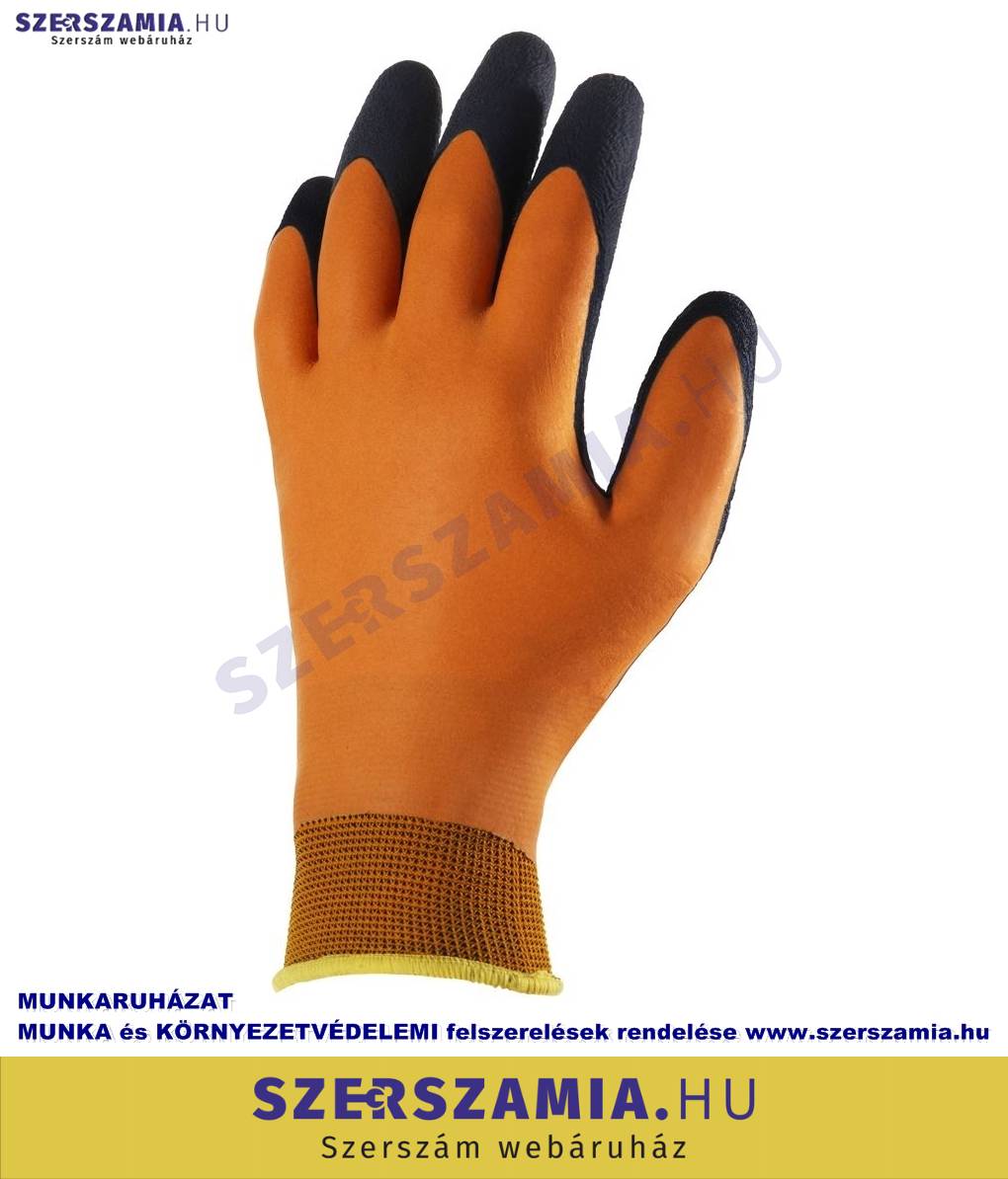 Latex végig mártott narancs/fekete védőkesztyű, méret: 10, 1 pár