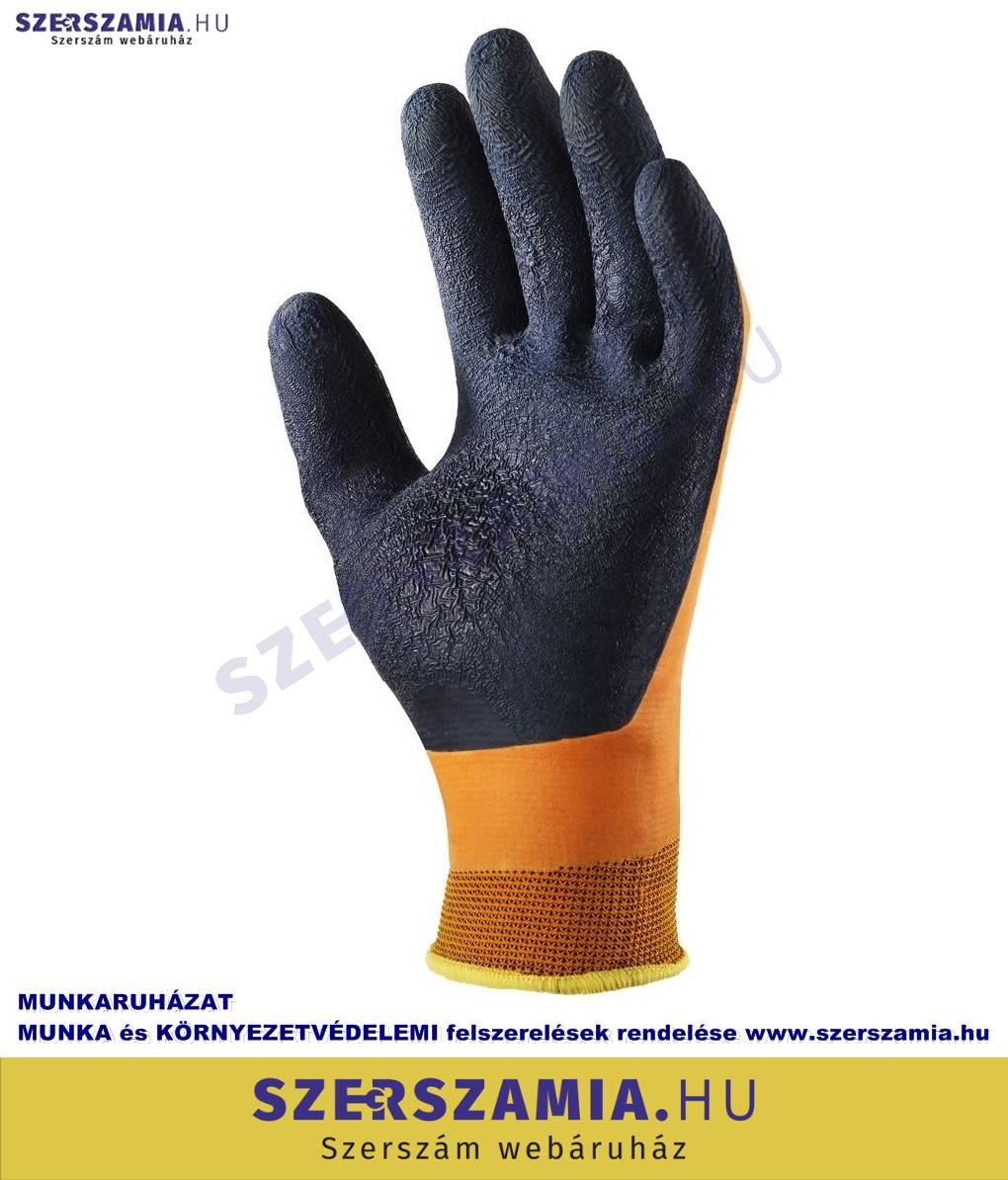 Latex végig mártott narancs/fekete védőkesztyű, méret: 9, 1 pár
