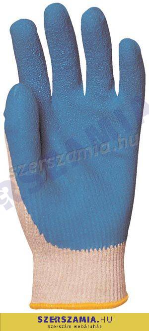 Rugalmas, kötött kesztyűre kétszer mártott, kondenzált kék latex. Megerősített mutató- és hüvelykujjrész. Szellőző kézhát, rugalmas mandzsetta. Csúszás elleni érdesített tenyér EU SZABVÁNY: EN420, EN388: 3242