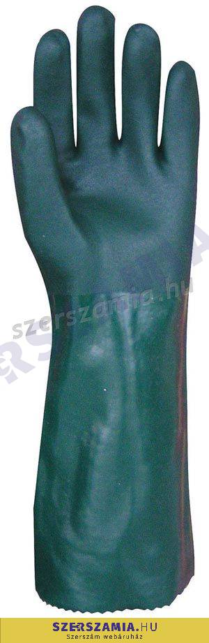 Mártott Polimer kesztyű, zöld, vegyszerálló, 40cm, méret: 8, 10pár / csomag