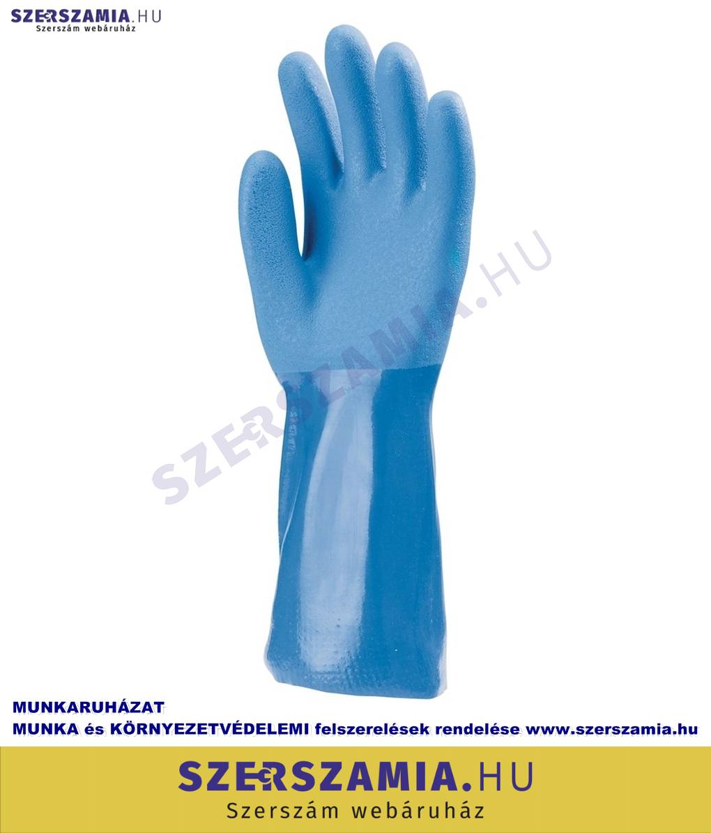Mártott PVC kesztyű, kék, méret: érdes, sav/lúg/olajálló, 34cm, méret: 10, 1 pár