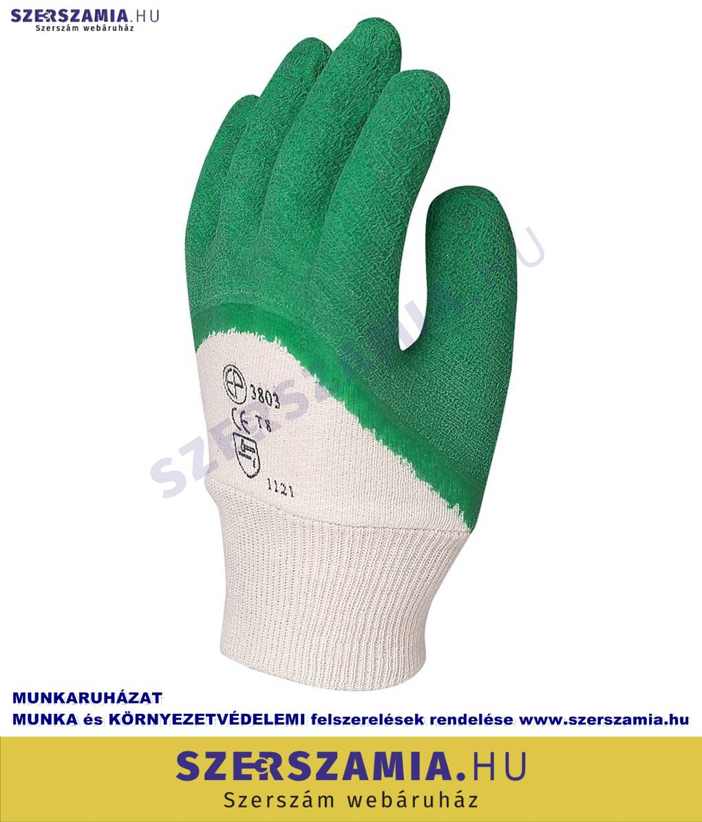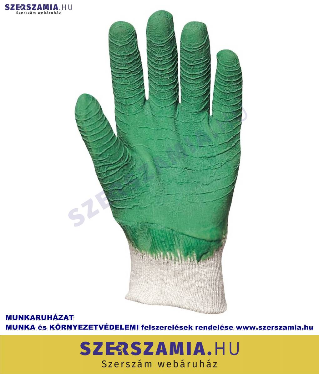 Mártott zöld krepp Latex, érdes, szellőző kézhát, méret: 10, KIFUTÓ termék, Helyettesítő: 3810 12pár / csomag