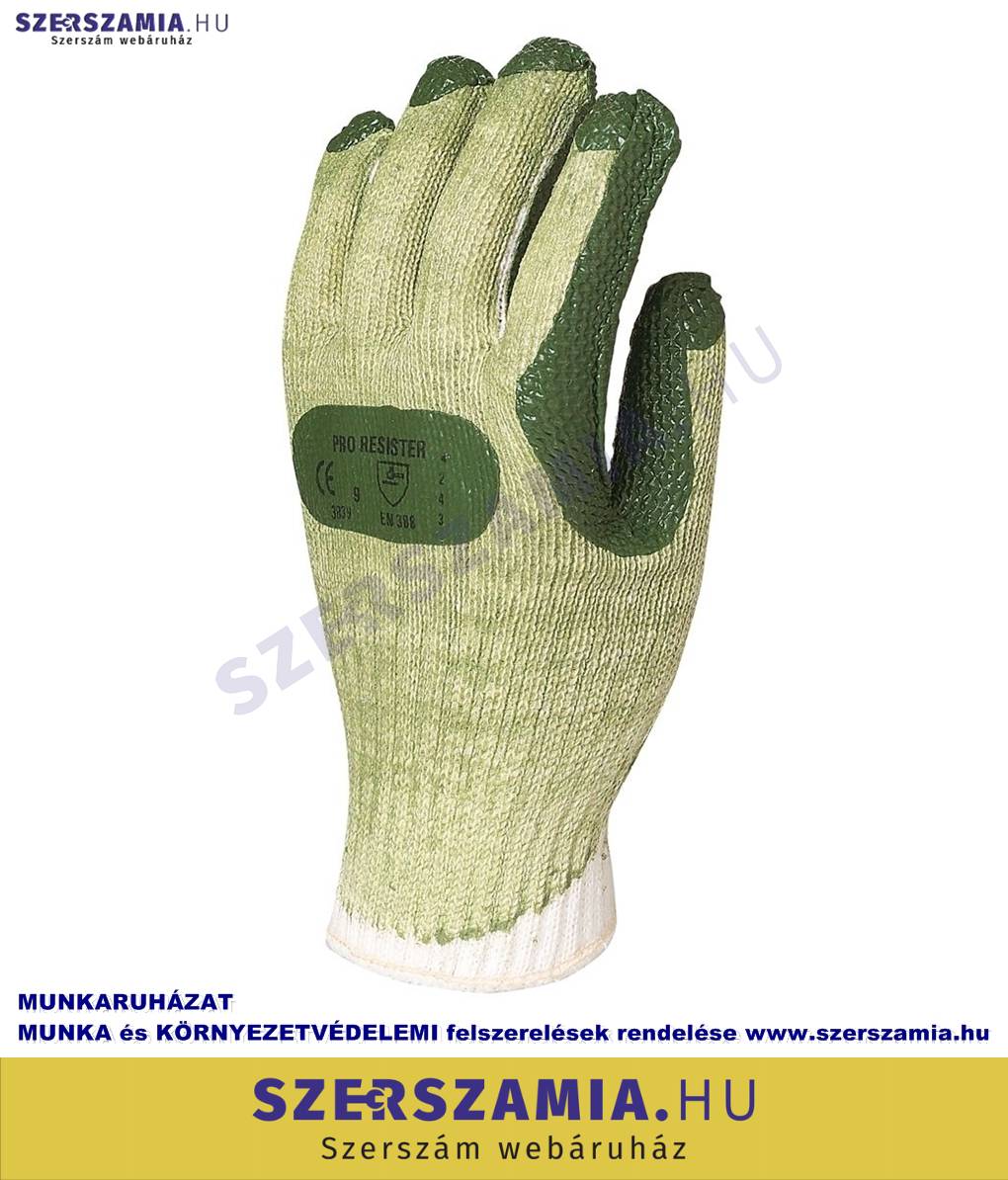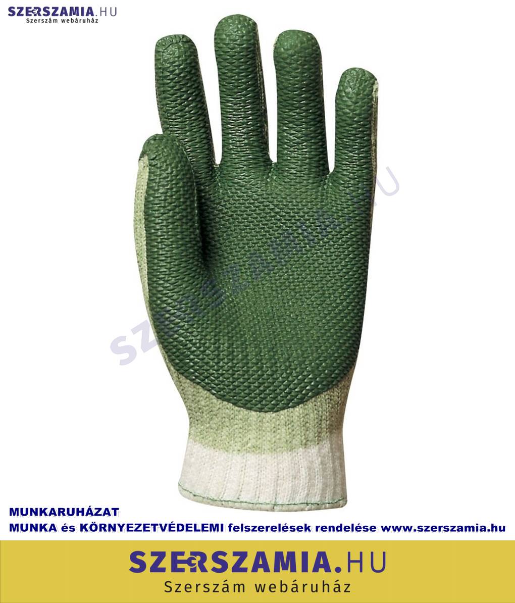 Különösen erős, vulkanizált, zöld színű tömörített latex. Kötött kézfej, szellőző kézhát, gumírozott mandzsetta. Vágás- és szúrásbiztos, csúszás ellen érdesített tenyér. MÉRET: 8, 9 és 10-es EU SZABVÁNY: EN420, EN388: 4243