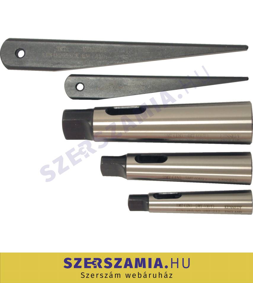 Három Morse-kúp hüvely: 1 - 2, 2 - 3, 3 -4 MT. Teljesen átedzett, kívül és belül köszörült. Két kiütő 1 - 2 és 3 - 4 MT kilazításához.
