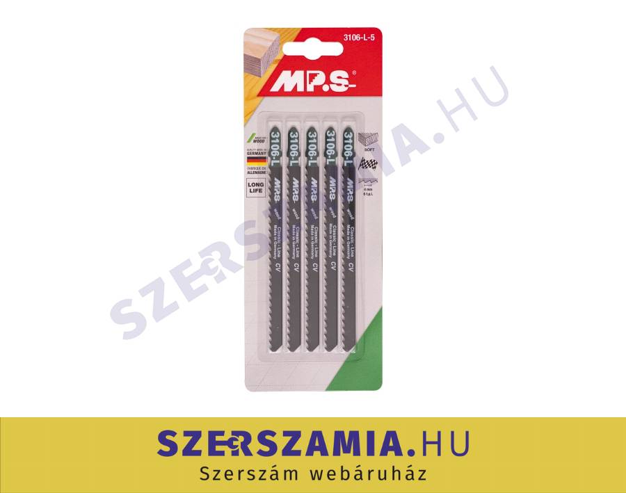MPS Classic Line egybütykös szúrófűrészlap fára CV 110/4,0mm 3106-L-5db (ZO-031103-0164) FORGÁCSOLÁSTECHNIKA / SZÚRÓFŰRÉSZLAPOK EGYBÜTYKÖS SZÁRRAL / EGYBÜTYKÖS SZÚRÓFŰRÉSZLAPOK FÁHOZ