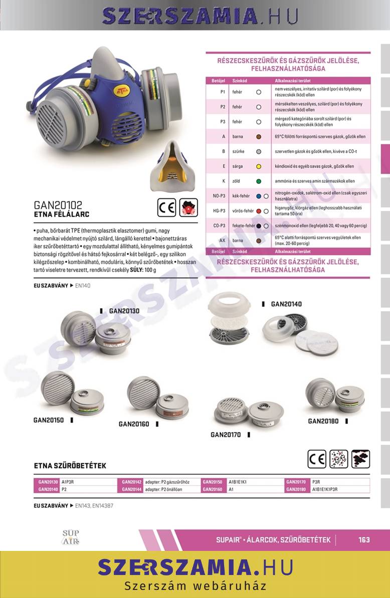 Mérgező kategóriába sorolt szilárd (por) és folyékony részecskék (köd) ellen EU SZABVÁNY: EN143, EN14387