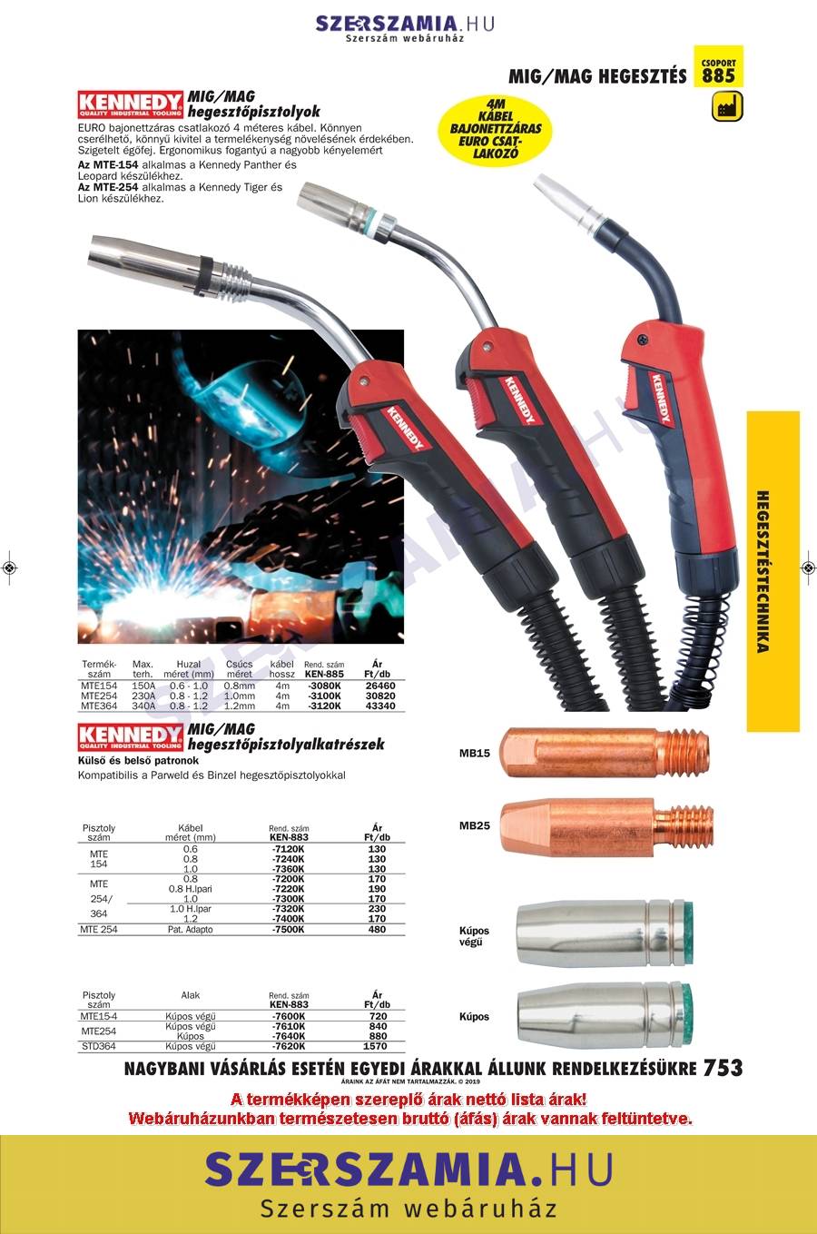 A termék további adatait a nagyítható képek tartalmazzák. A termékképen szereplő árak nettó árak. Webáruházunkban természetesen bruttó (áfás) árak vannak feltüntetve.ures1 =HOSSZ(D3)Compatible with Kennedy, Binzel andl Parweld Mig Torches.