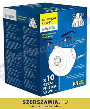 Gyenge mérgek és mérsékelten veszélyes szilárd és folyékony részecskék ellen (pl. Keményfa-porok, üveggyapot, műanyagok, ásványi olajok, fémpor és füst, alumínium, kvarc, réz, baktériumok)az EN149-es szabvány által meghatározott dolomit poros kiegészítő vizsgálaton is megfelelt, bizonyítva ezzel hosszabb élettartamát és jobb légzési komfortját. Kagyló forma, mely a kialakított orr-részének és puhaságának köszönhetően nagyobb kényelmet biztosít hosszabb idejű viseléskor is, valamint csökkenti a páraképződést és könnyebben hordható védőszemüveggel. Külső és belső pp-SMS réteg, elektrosztatikus polipropilén közszűrő. Könnyebb le- és felvétel az állítható, összefüggő gumipánttal. Névleges védelmi tényező: 12 MK. 23276: kilégzést segítő szeleppel. Súly: 18 g EU SZABVÁNY: EN149:2001