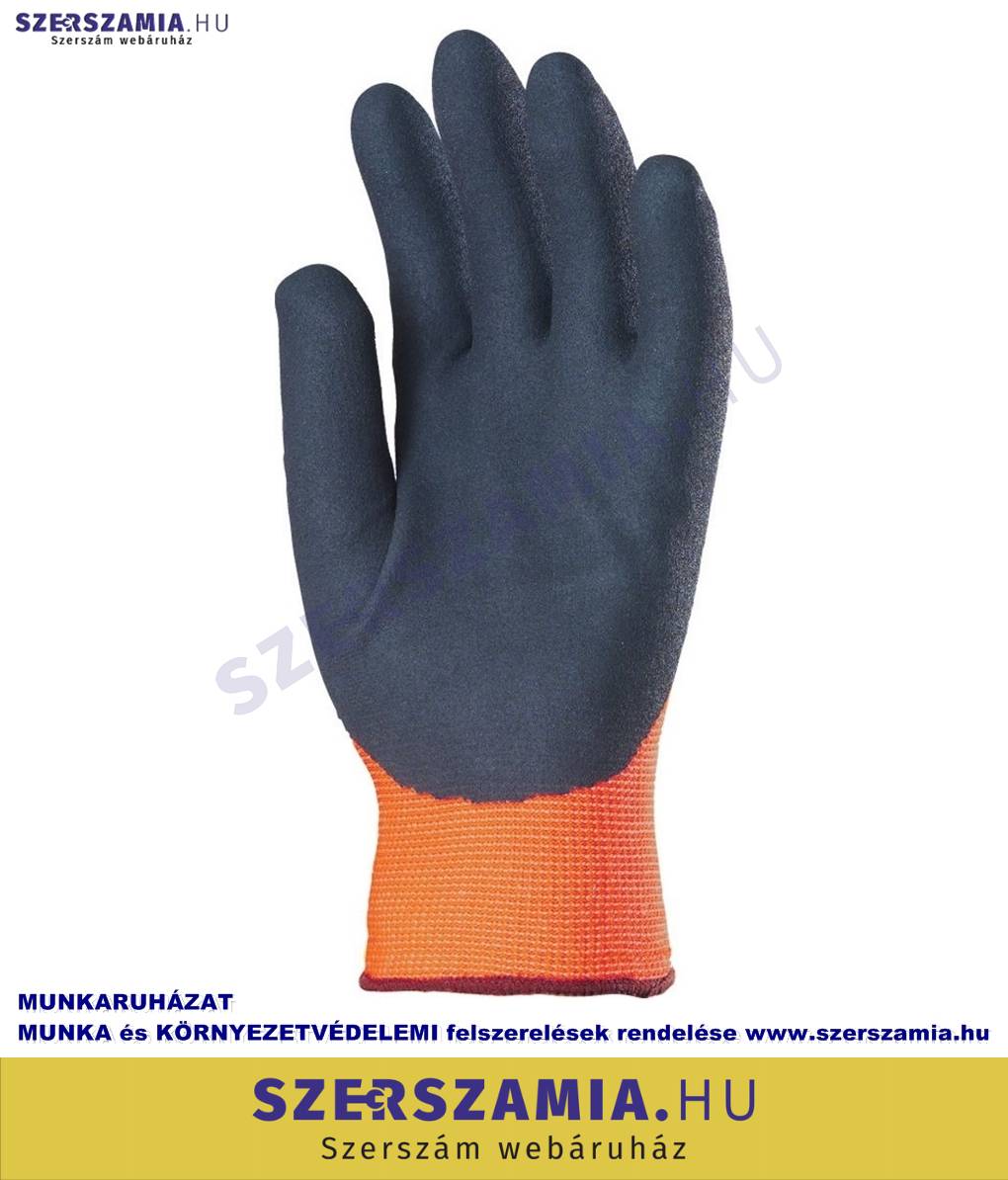 Szerelőkesztyű, narancs, téli, érdes fekete Nitril 3/4 hát, méret: 10, 10pár / csomag
