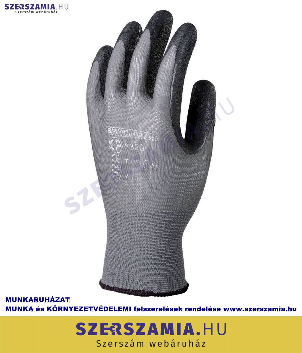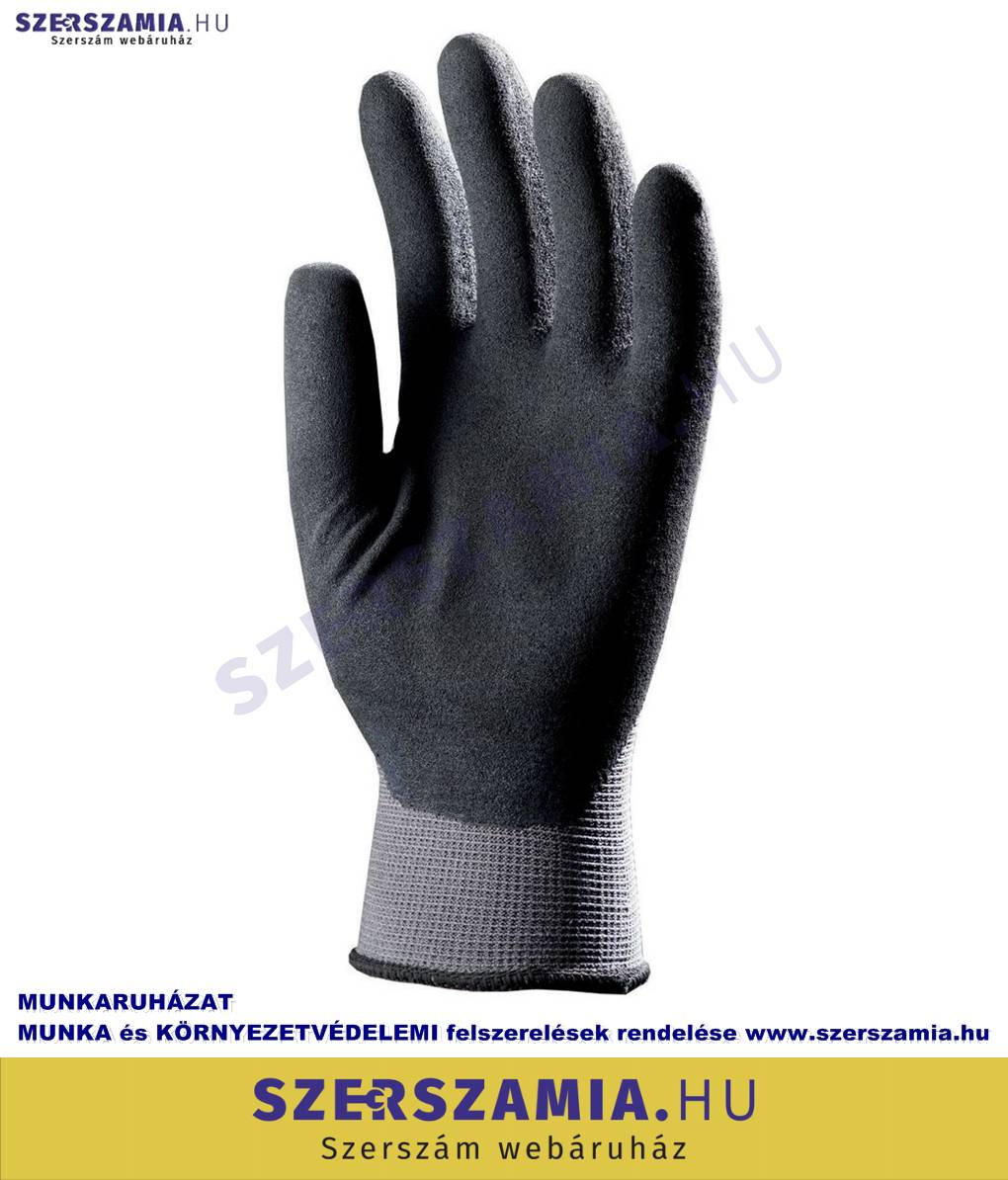 Szerelőkesztyű, szürke PA/fekete habosított Latex tenyér, méret: 9, 10pár / csomag