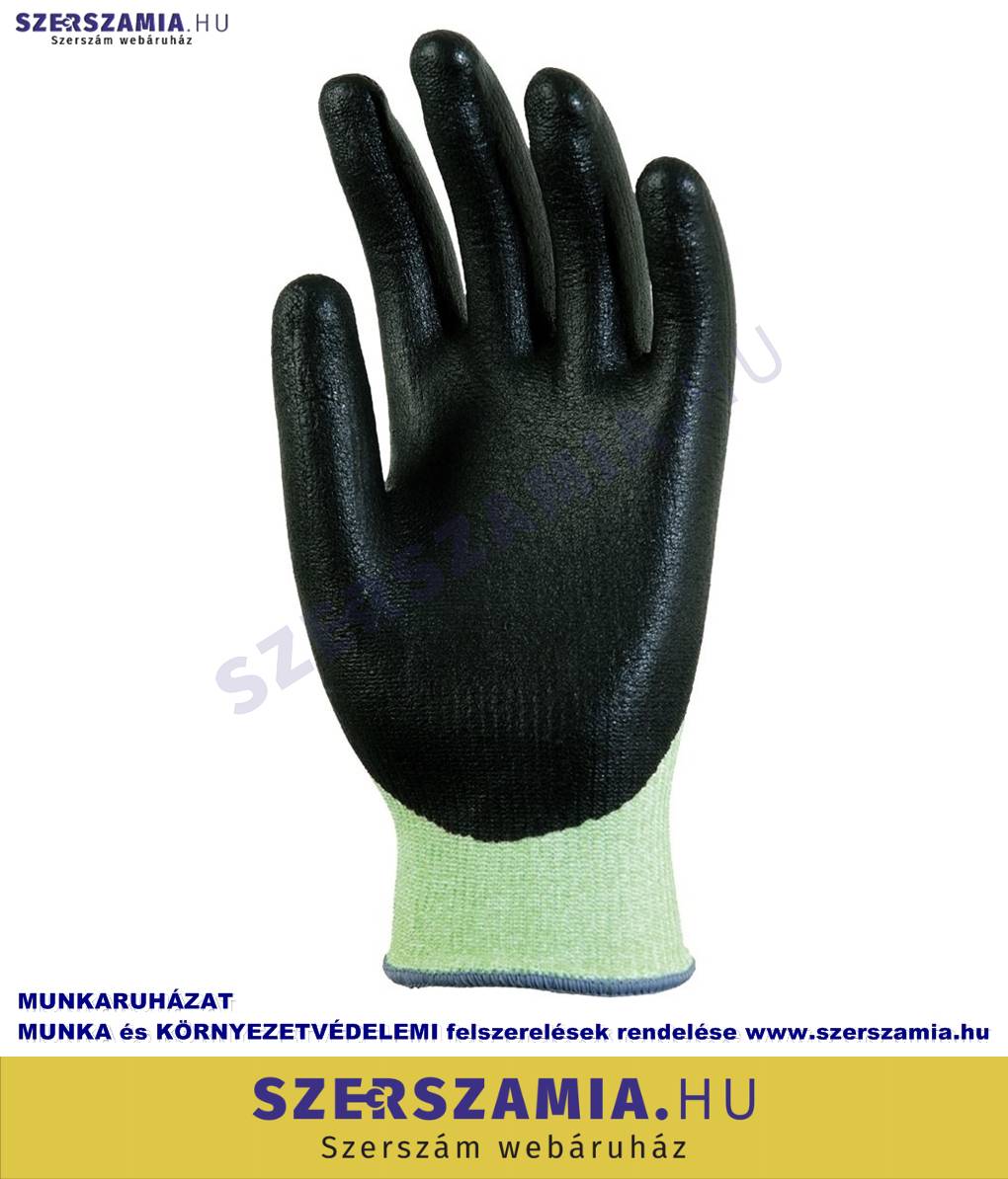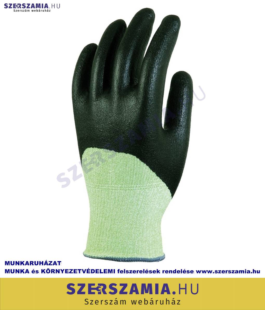 Szerelőkesztyű, vágásbiztos zöld HPPE, 3/4-ig fekete PU/Nitril, méret: 9, 1 pár
