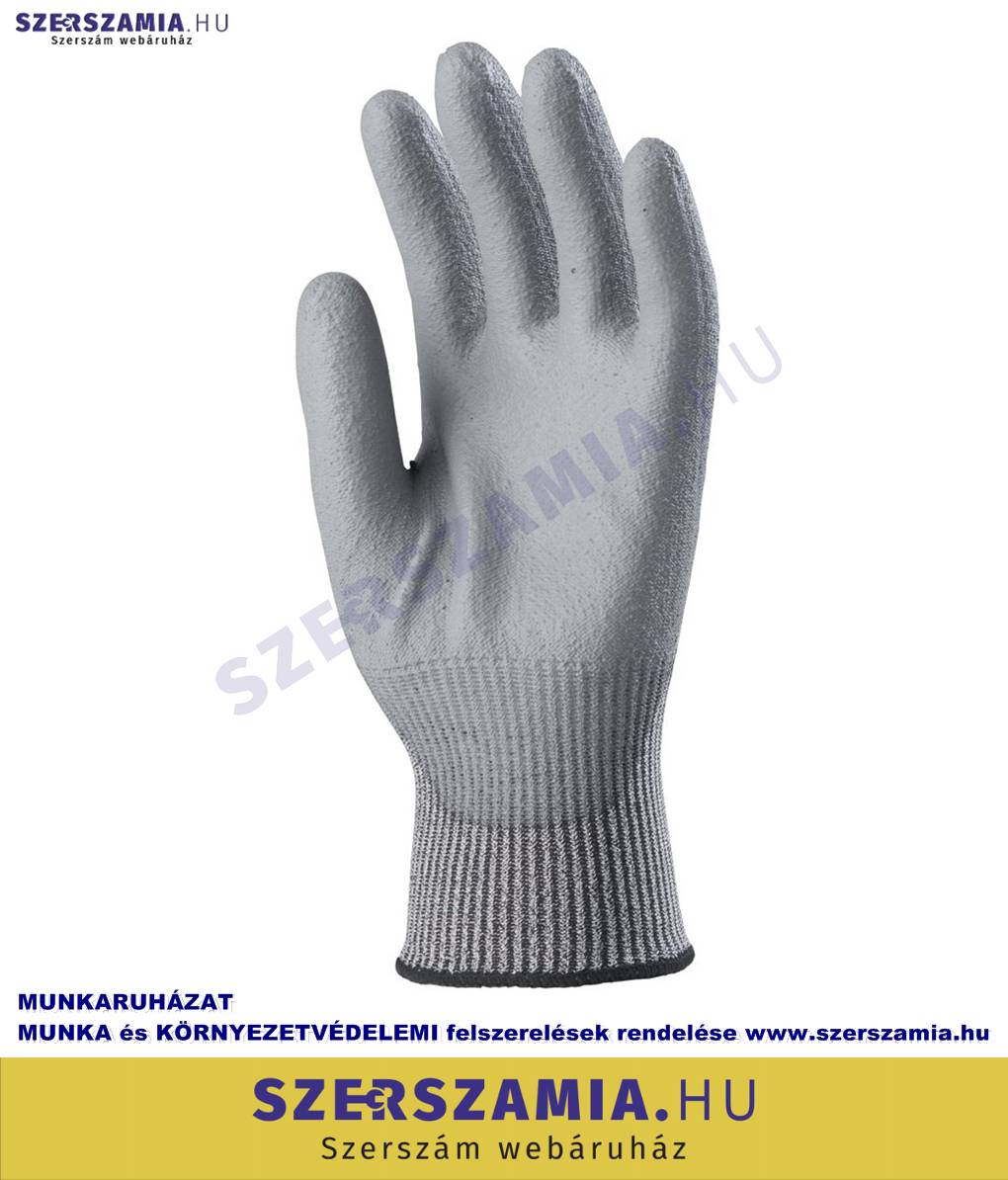 TAEKI5 vágásbiztos Szerelőkesztyű, szürke PU tenyér, méret: 7, KIFUTÓ termék 1 pár