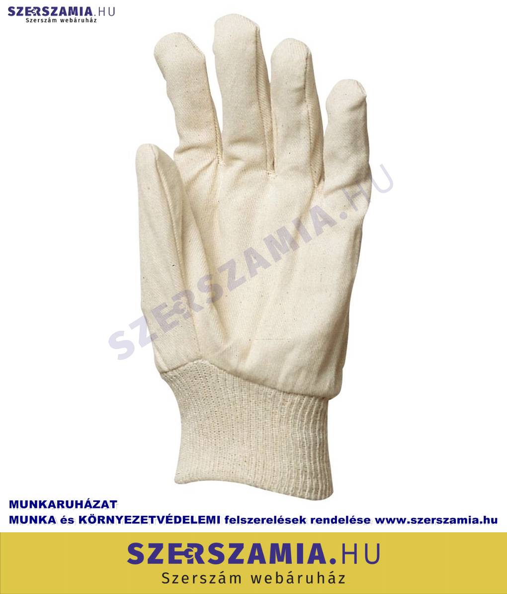 Varrott fehér vászon kesztyű. Jól szellőző, erős alapanyag. 27 cm hosszú. Gumírozott mandzsetta. MÉRET: 10-es. EU SZABVÁNY: EN420, 1. Kat.