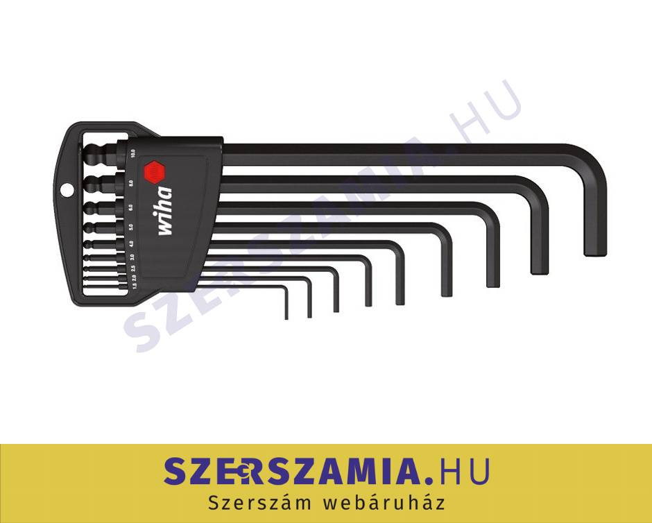 WIHA Classic gömbvégű imbuszkulcs készlet 9r. SW1,5-10 SB369H9B/No.03992 (ZO-040208-0595) KÉZISZERSZÁMOK / HAJLÍTOTT és T-NYELŰ CSAVARKULCSOK, KÉSZLETEK / IMBUSZKULCSOK és KÉSZLETEK