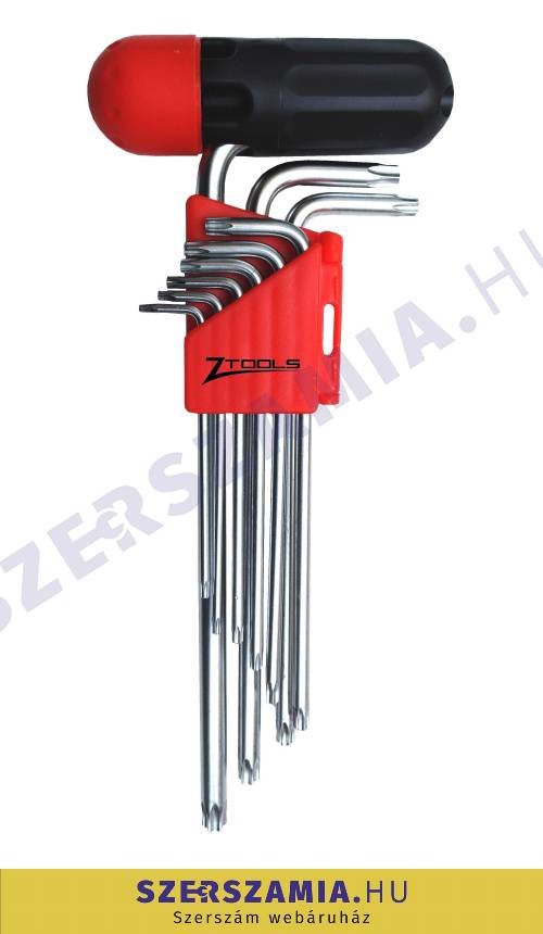 ZO-TOOLS furatos TORX kulcskészlet extra hosszú + markolat 9r. TH10-TH50