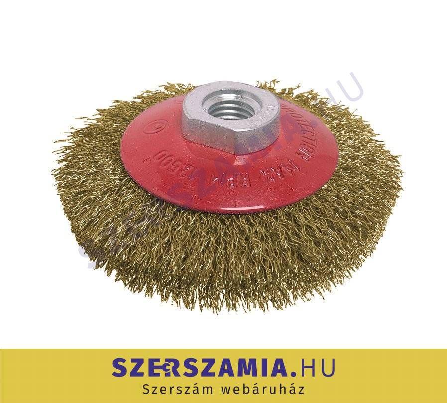 • Hullámos, nemesacél szálú, menetes rekord kúpkefe sarokcsiszoló gépekhez