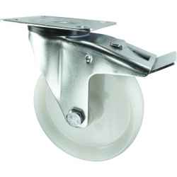 Közepes teherbírású nejlonkerék, bolygó típus felső tányérral és fékkel 100mm