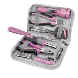 Szerszámkészlet, 39 db-os 1/4 col, 8 dugófej 5-14 mm, fogó, csavarhúzók, kalapács, bit-ek, Extol LADY